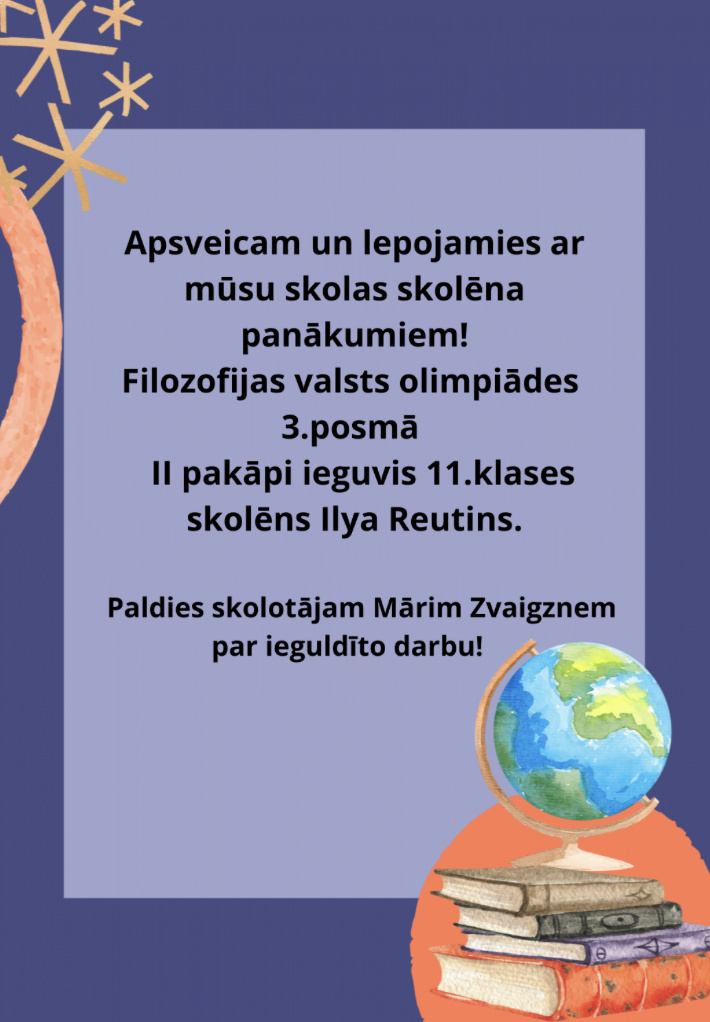 Published on02.01.2025SasniegumiPanākumi Filozofijas valsts olimpiādes 3.posmā 07.03.2023. Share on social media