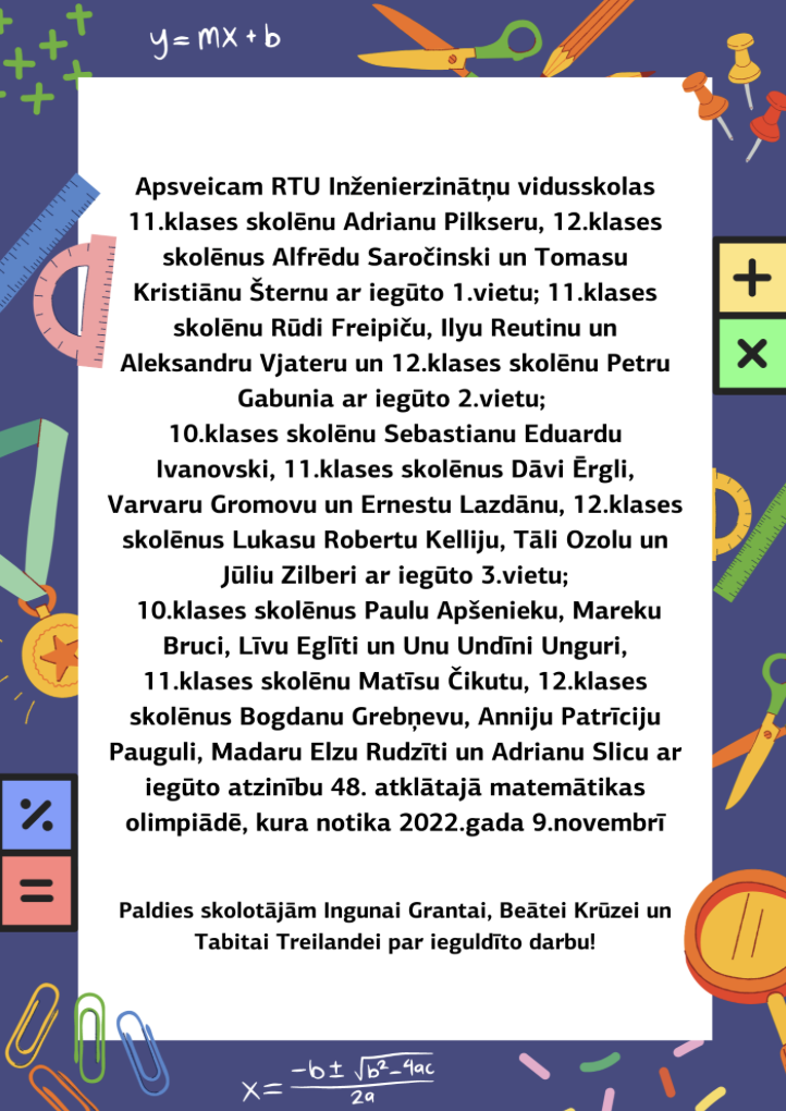 Sasniegumi 48. atklātajā matemātikas olimpiādē
