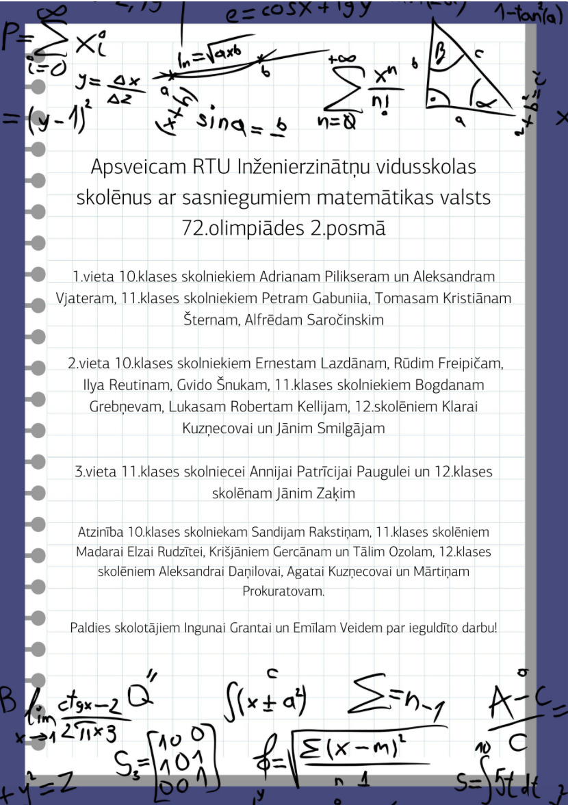 Published on01.01.2025SasniegumiSasniegumi matemātikas valsts 72.olimpiādes 2.posmā 09.02.2022. Share on social media